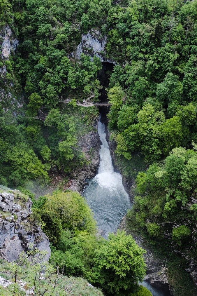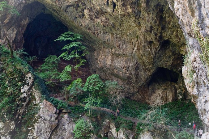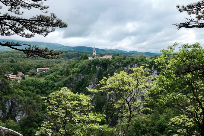As we had quite a bit of time, we walked up a nearby path and admired the scenery. Far below we could see a raging river and a little foot bridge. Sanjin told us those were near the cave exit and we all thought it looked innocent enough, but that was before our tour of the caves.