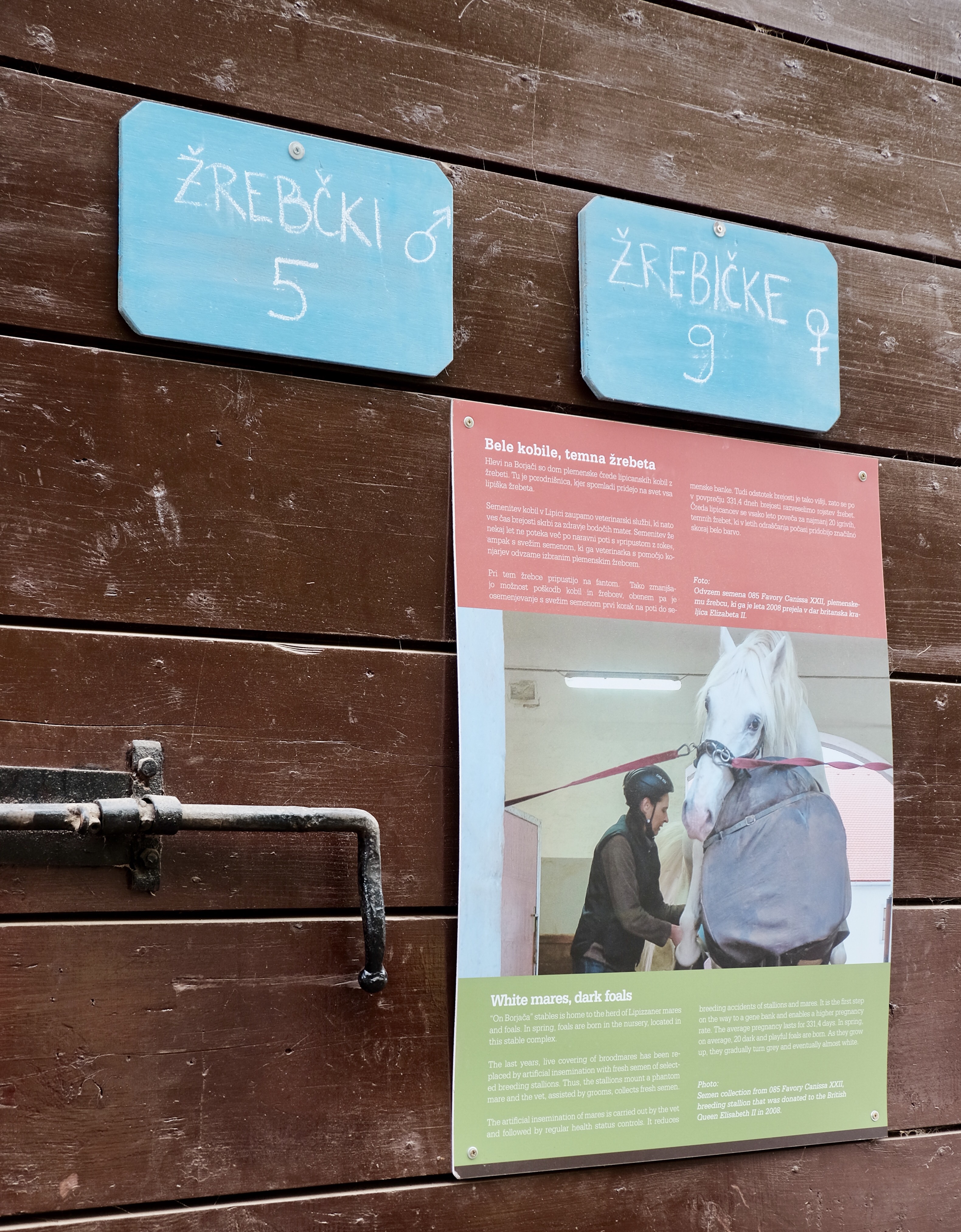Lipica was our introduction to very exclusive, precise horse breeding. NOTHING at the Stud Farm is left to chance. The horses breed, but there isn’t anything “natural” about the process!😮 The breeding program is controlled by law, and carefully implemented to make sure there isn’t any inbreeding. Machines and humans take care of gathering sperm and insemination. The Lipica website describes a more free and natural breeding process, but my impression from our visit was completely different. It’s even managed so that most of the foals are born at the same time of year. Here’s an explanation of the process: