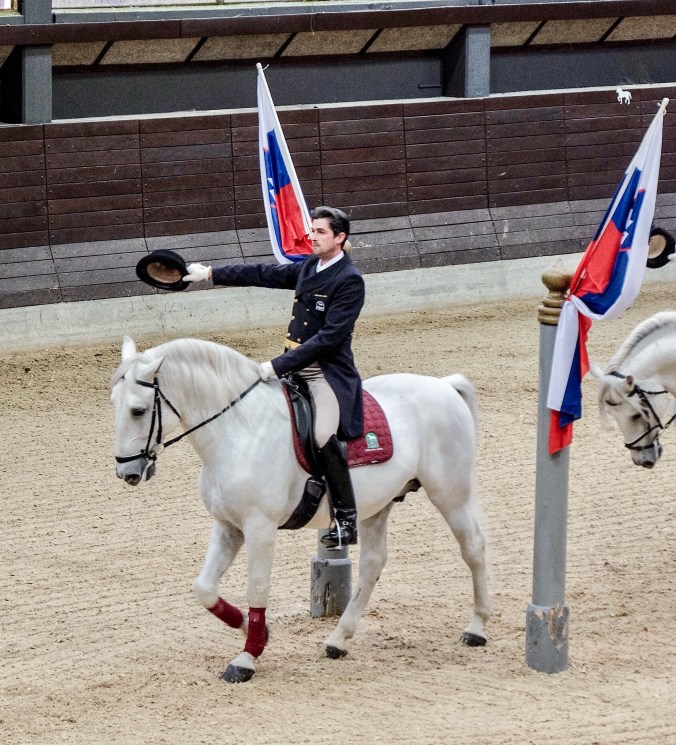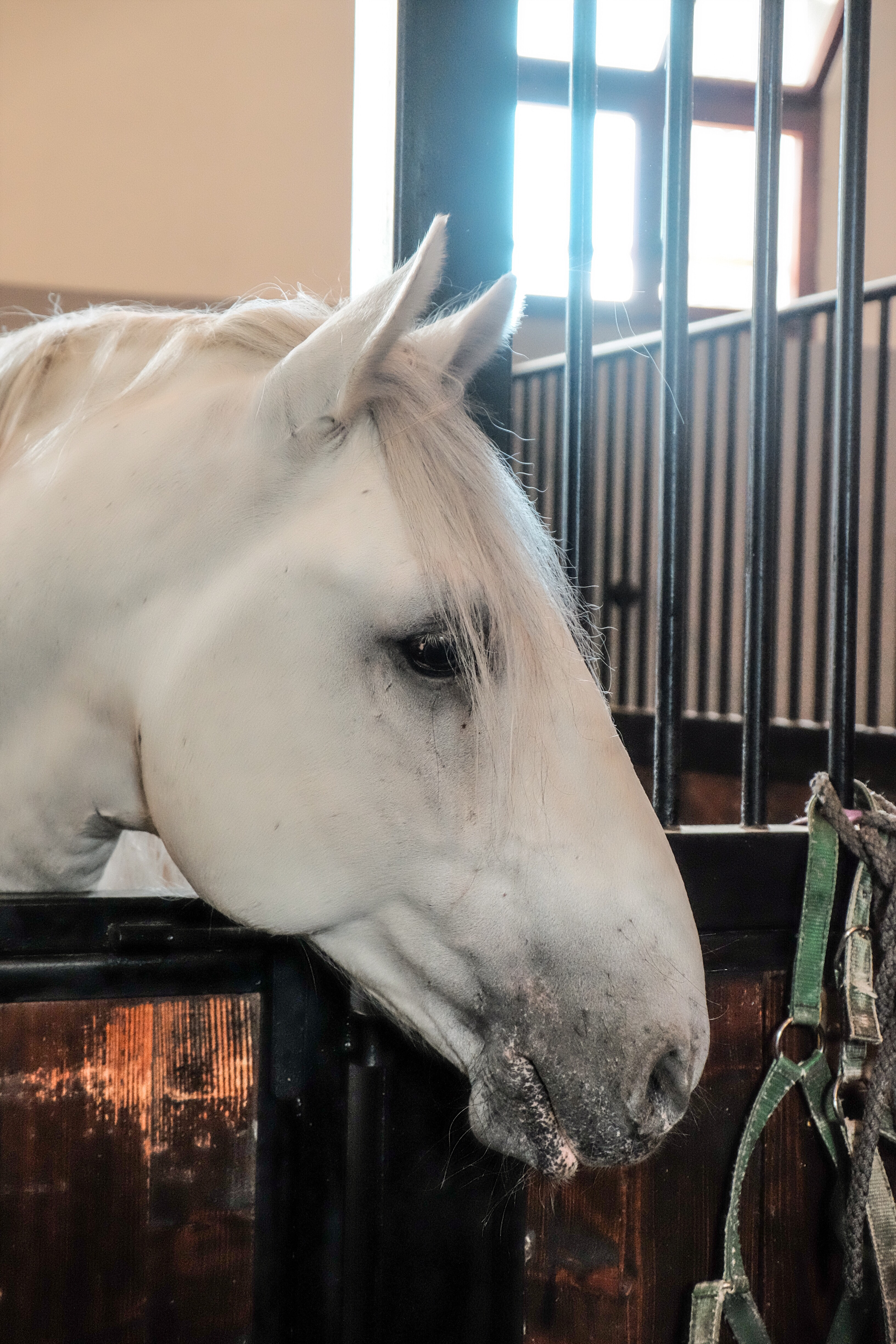 One thing I thought was very interesting is the horses are actually black or bay at birth, and gradually turn shades of gray as they mature. Gray was the color preferred by the Austrian royal family, so over the years this became the dominant color in the breeding process.