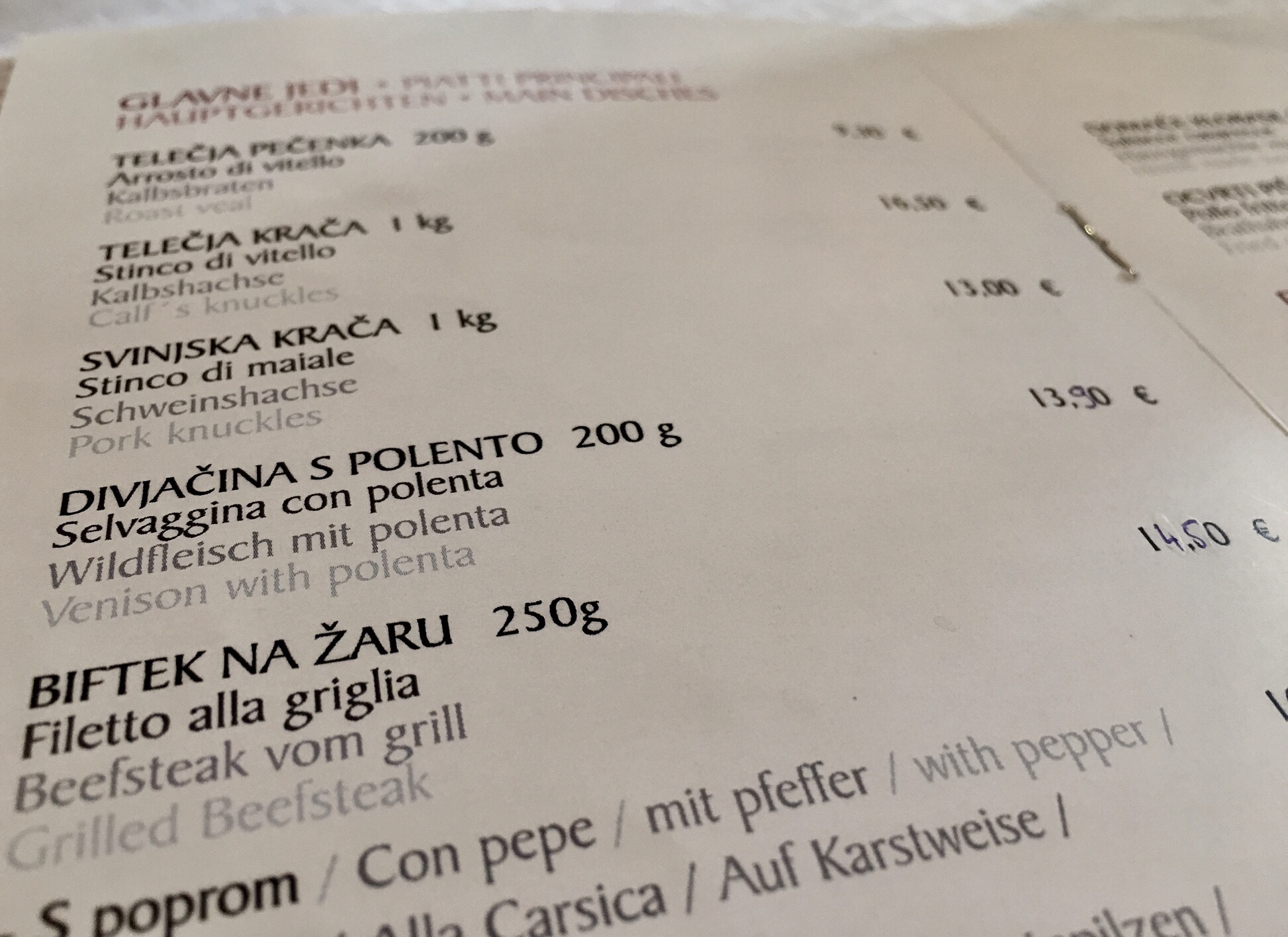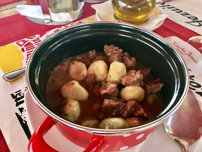 Sunday’s lunch was at Gostilna Muha. The restaurant has been in the same family for generations, and serves what I would consider to be generous portions of comfort food. Of course, there was plenty of wine and bread too. I can’t imagine a restaurant surviving in that part of the world without copious amounts of both!