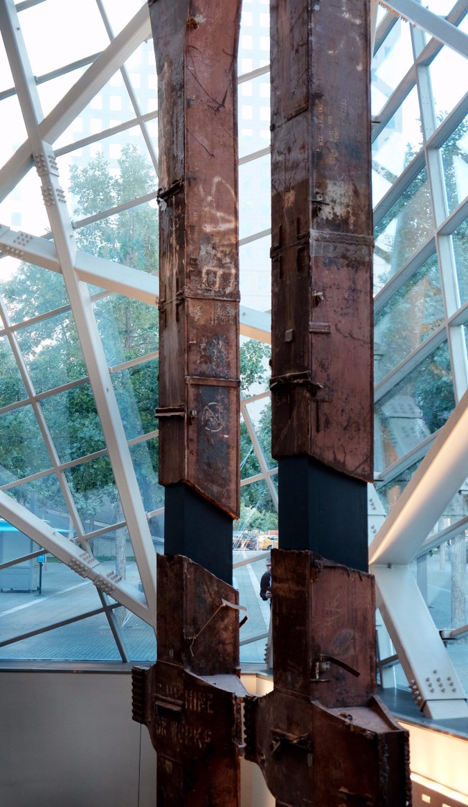 We went straight to the museum since we had tickets for a small group tour at 10:00. The museum is mostly underground, and is built within the footprint of the original World Trade Center. Parts of the original structures, such as the slurry (retaining) wall and support columns were incorporated into the museum.