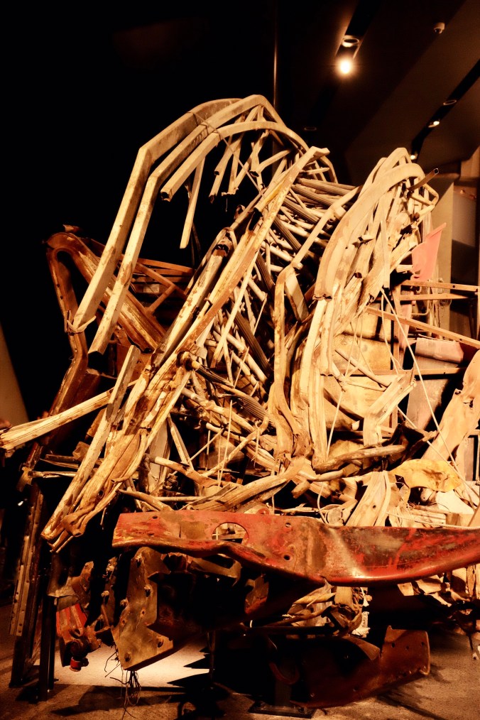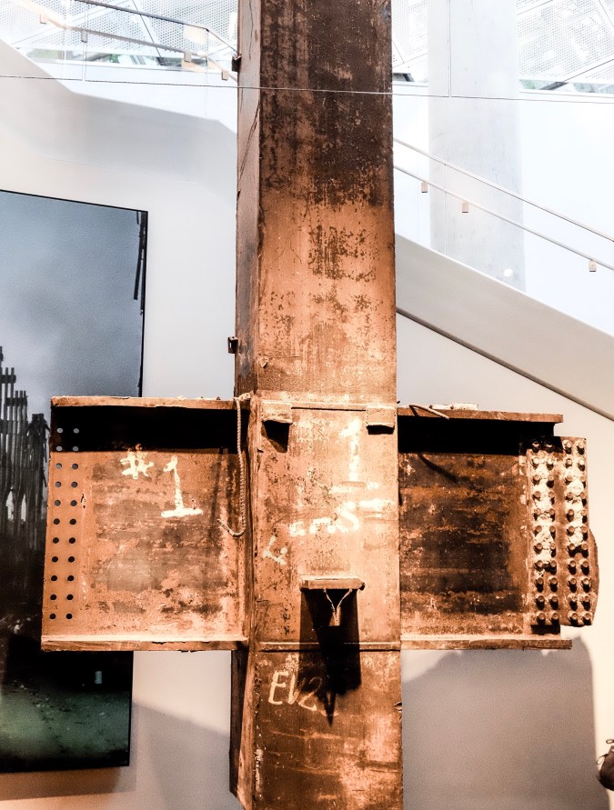 There are two other very moving exhibits that can’t be photographed. One is the Memorial Exhibit where photographs and videos of the victims are displayed together with voice remembrances from their loved ones. The other is the Historical Exhibit, where all types of artifacts from the day are on display. Here visitors can see everything from shoes to desk contents to wallets to a crushed ambulance. We spent about 4 & 1/2 hours inside the museum and it wasn’t enough. I could have spent an entire day in just these two exhibits and still not feel like I had seen everything.