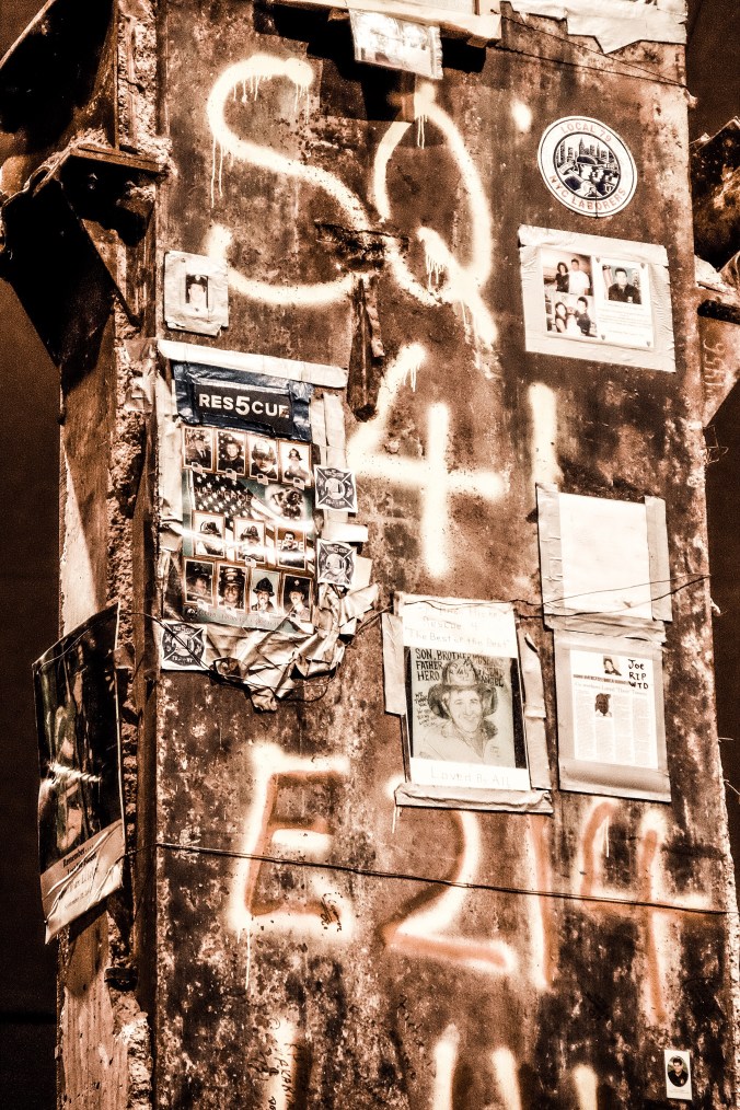 Near the slurry wall is the last column – the last piece of the original structure to be removed from the ruins. On the column are many missing posters, mementos and messages left in the days and weeks following the tragedy.