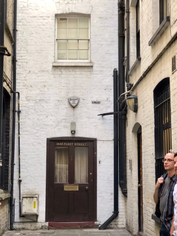 Our fourth stop was the Old Bank of England, a short walk down Fleet Street from the Cheshire Cheese. On the way we passed Samuel Johnson’s house, and made a stop to see the alley where the fictional Sweeney Todd plied his “trade.”